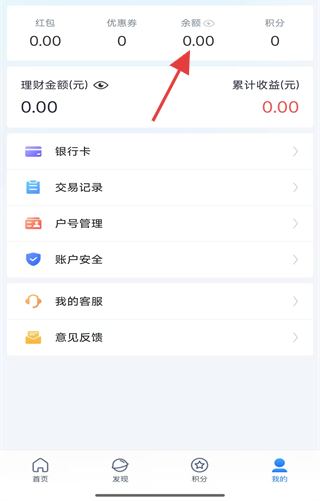 1、进入到电e宝App后,在我的页面,点击“余额”。