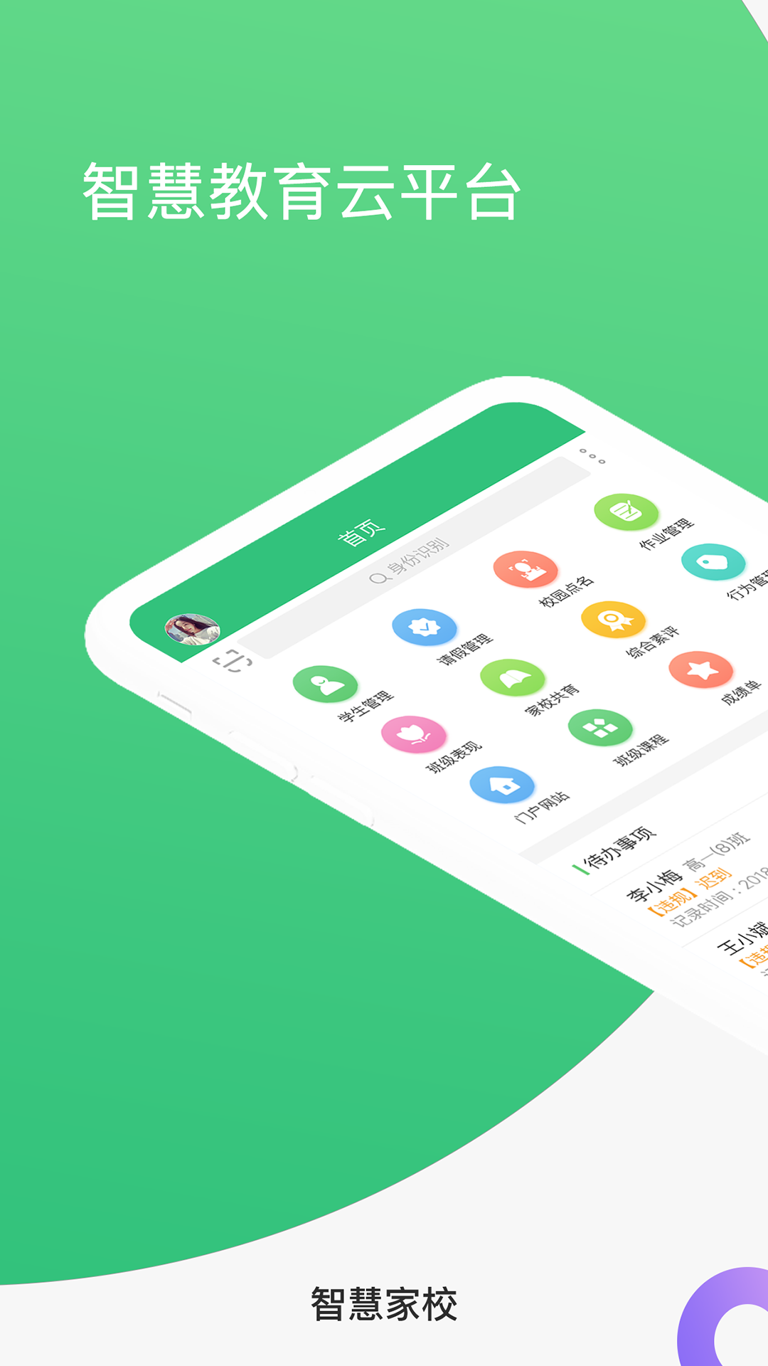 智慧家校-教师端,现代中小学校园移动办公新体验!整合单一业务软件,系统获取教学大数据,通过云服务平台打造智慧教育系统!