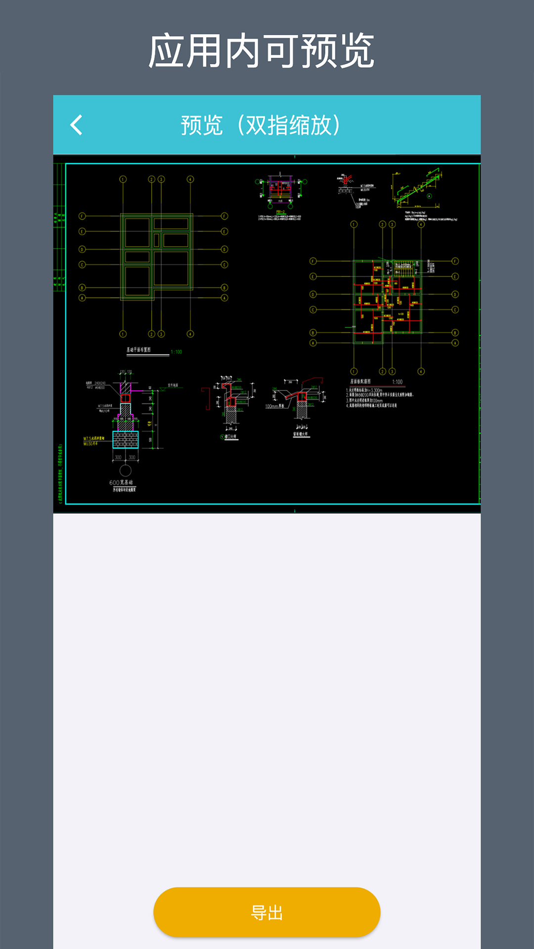 CAD图纸转换完成后可以直接在软件中预览,也可以直接下载到您的设备或导出到微信等软件上查看。