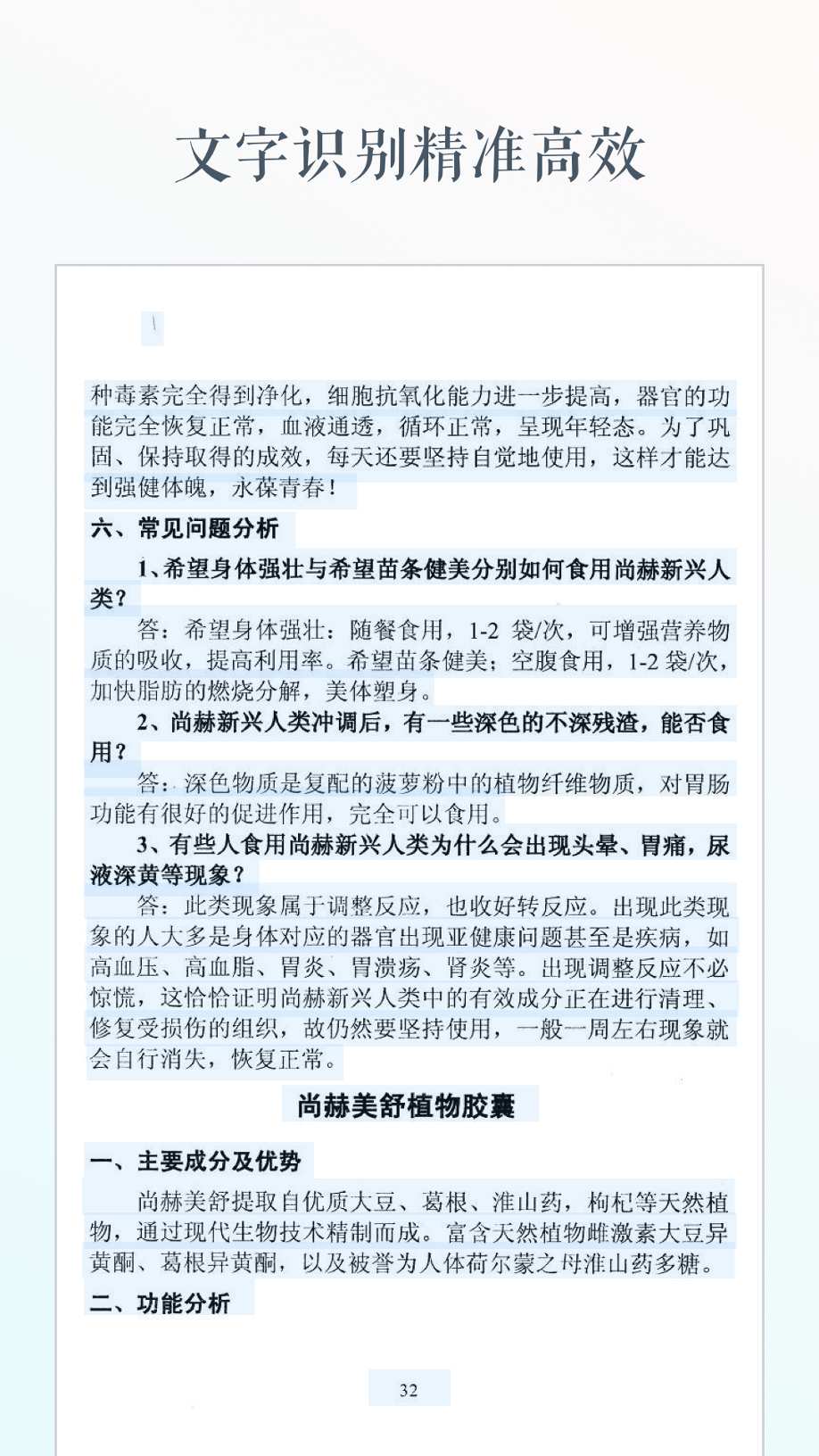 它能够读取相机或者图库中的图片,由您指定识别区域,然后自动转换为文字。