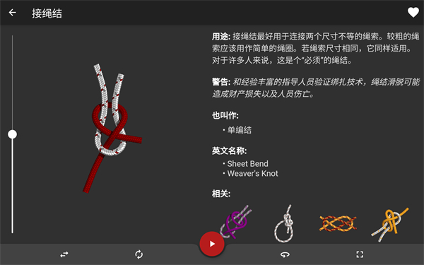 3、可模拟现实进行练习,3D效果展现最真实的绳结打法。