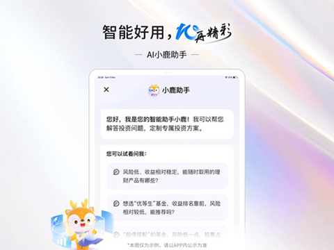1、AI小鹿助手:您身边的智能财富管家,开口即理财,为您解读信息、精准产品筛选、一句话定制专属方案。