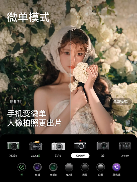 横屏拍摄更专业,vlog、live拍摄更好看。清透人像效果,随手拍出电影感!