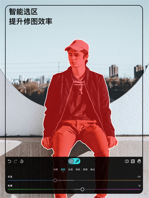 • AI识别:天空,人物,背景,植被,建筑物,地面,动物等。