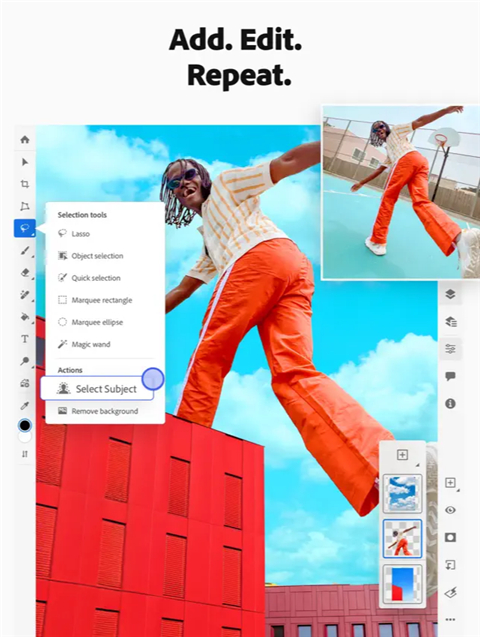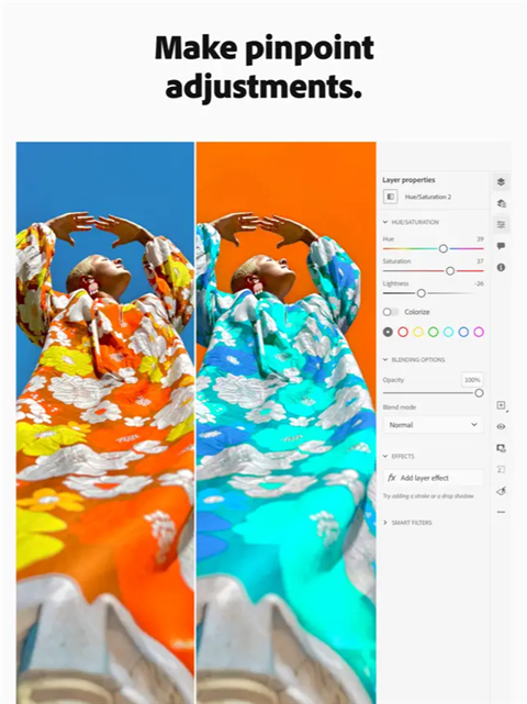 Adobe Photoshop iPad版是一款高效AI图片编辑工具,是Adobe公司为Phtoshop客户推出的iPad客户端,它将图层、蒙版、选区 等电脑端核心功能完全移植,其全新AI算法更是融入其中,可帮助用户在处理图片时更高效。PS iPad版在UI和体验层面上做了彻底的重构,导致UI和交互逻辑与电脑端不同,用户需要一段时间学习才能上手,因此软件中内置了大量详细的教程,帮助用户快速上手操作。