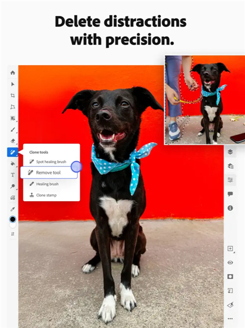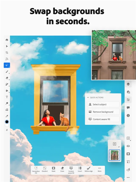 ● 使用强大的生成填充技术 (Generative Fill),快速且无缝地移除图片中的内容。