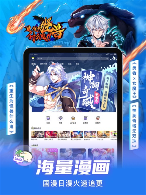 上万部国内外(日韩、欧美、港台)完美漫画,各类题材(热血、搞笑、魔幻等)全方面覆盖;资源内容每日更新, 紧贴网络进度,即时更新提醒,让你追漫0等待。