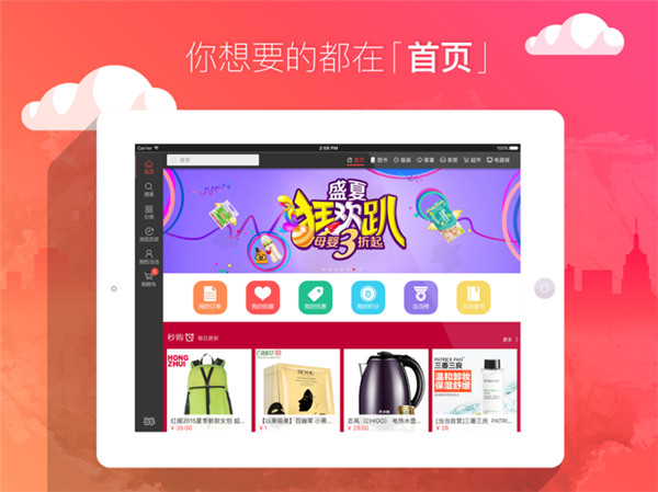 轻动指尖,百万时尚正品,随时随地尽收眼底;优化界面、搜索,轻松购物更直接,分类搜索更易快速找到需要的商品;