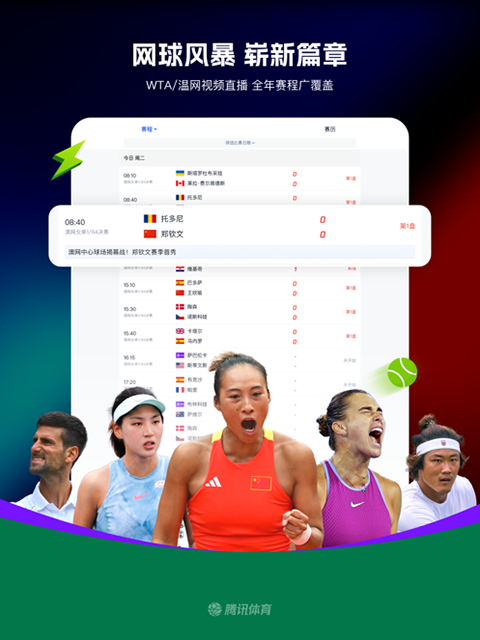 3、WTA震撼来袭!郑钦文利刃出鞘!腾讯体育全景追踪中国金花撕裂强敌防线!