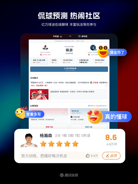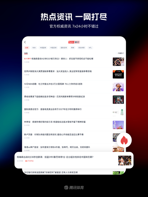 1、NBA激战正酣,腾讯体育独家直播!中国时隔18年再次诞生NBA首轮秀,一同见证杨瀚森跃向浩瀚!