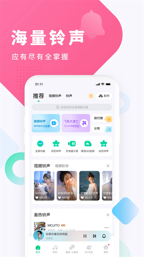 热门流行、搞怪、影视、动漫、短信、闹钟、DJ,应有尽有。
