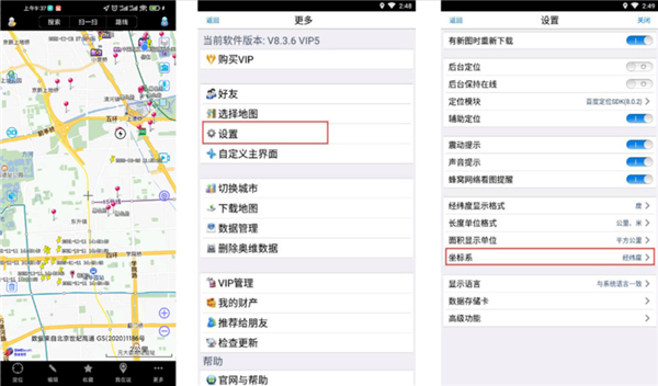 在手机端主界面,点击【更多】→【设置】→【坐标系】。
