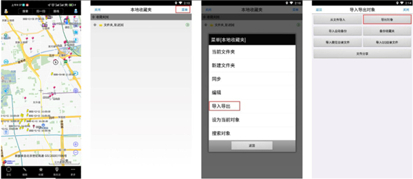 在手机(平板)端主界面,点击【收藏】→【菜单】→【导入导出】→【导出对象】。