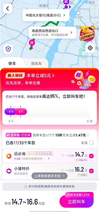 温馨提示:高峰时期或偏远地区建议您提前叫车,以免给您的行程带来不便~