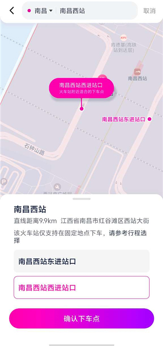 3、选择完成后点击确认下车点;