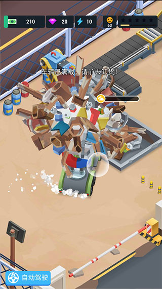 2、玩家通过拖动屏幕,控制车辆收集废料。