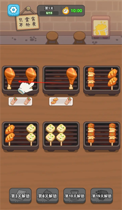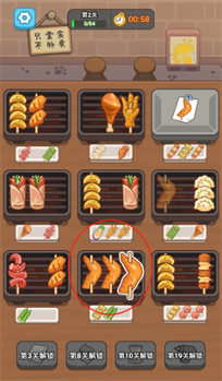 3、合理的将他们整成三个一起烤然后消除,这个期间是有时间限制的,以此类推游戏强度会越来越大。