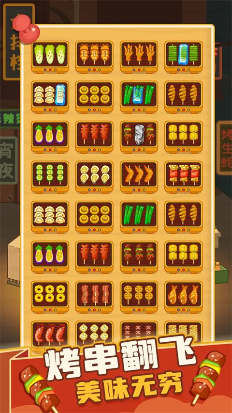 疯狂烧烤摊是一款趣味十足的休闲益智类游戏。游戏玩法简单,玩家只需通过指尖轻点,拖动烤串,把相同的三根烤串摆放在一起即可消除。疯狂烧烤摊游戏食材丰富多样,有牛肉串、羊肉串以及各类蔬菜串等,并且游戏还配备了各种神奇道具,助你扫清盘子障碍!此外,游戏每周都会更新关卡,难度持续升级,挑战不断,让你无论何时何地,如在地铁、沙发上或是排队时,都能畅玩,为你带来欢乐时光!