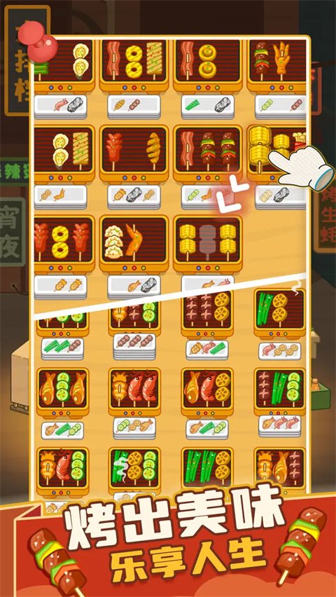 3、道具助力,大快朵颐:各种神奇道具随时待命,轻松扫清盘子障碍,让你的烧烤摊热闹非凡!