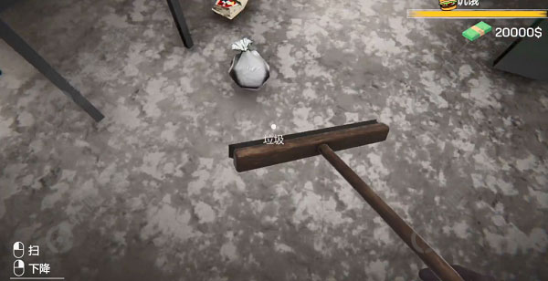 2、在门口的位置会有一个扫把道具,点击使用,之后使用扫把靠近垃圾的地方,点击一下即可将垃圾进行清除。