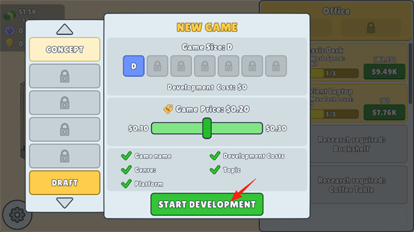 4、随后设置游戏的价格,点击屏幕下方的“START DEVELOPMENT”,开始开发。