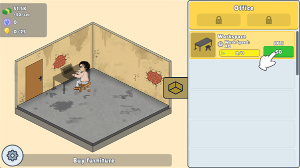 2、开局先购买基础的设施,桌椅电脑等等。