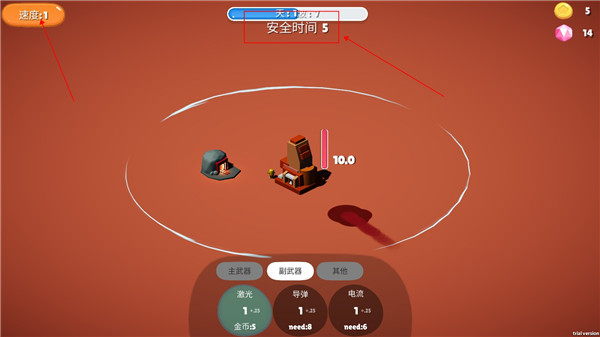 2、当上方的安全时间过去后就会有敌人出现进攻,玩家还可以点击左上角的游戏速度来加快游戏过程。