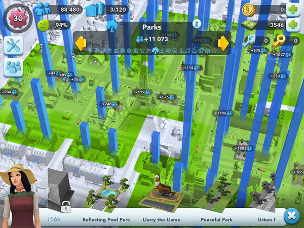 ④如果您决定移除公园或总部,您将可获得部分退回的模拟币,但用金钥匙购买的建筑物则无法退款,所以请确定您真的需要那块空间或是您已决定不要在这个地区继续进行城市发展。请记得,若您剷平一栋城市发展建筑而没有兴建替代方案,您将会失去增加的人口数量!