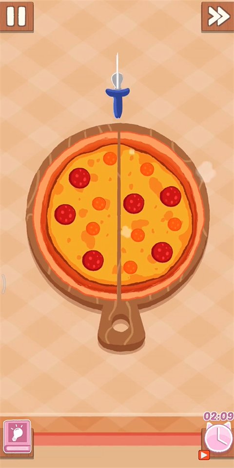 5、使用工具切开披萨,烹饪时间有限在右下角请注意;