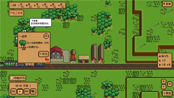 2、开局我们是没有任何物资的,等待火车到来就有村民了,点击树木选择砍伐村民即可进行砍伐收集;
