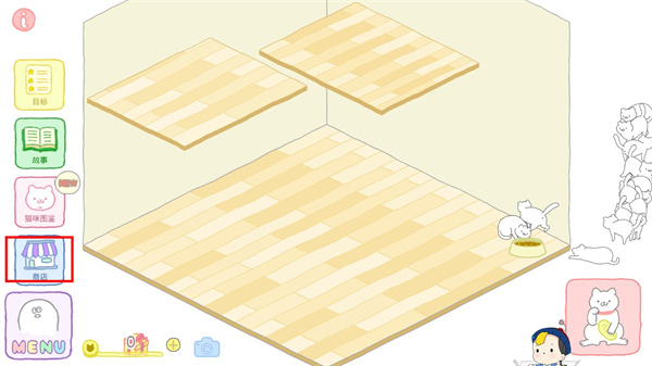 3、可以购买猫抓板,猫塔等等,也可以买新的房间哦;